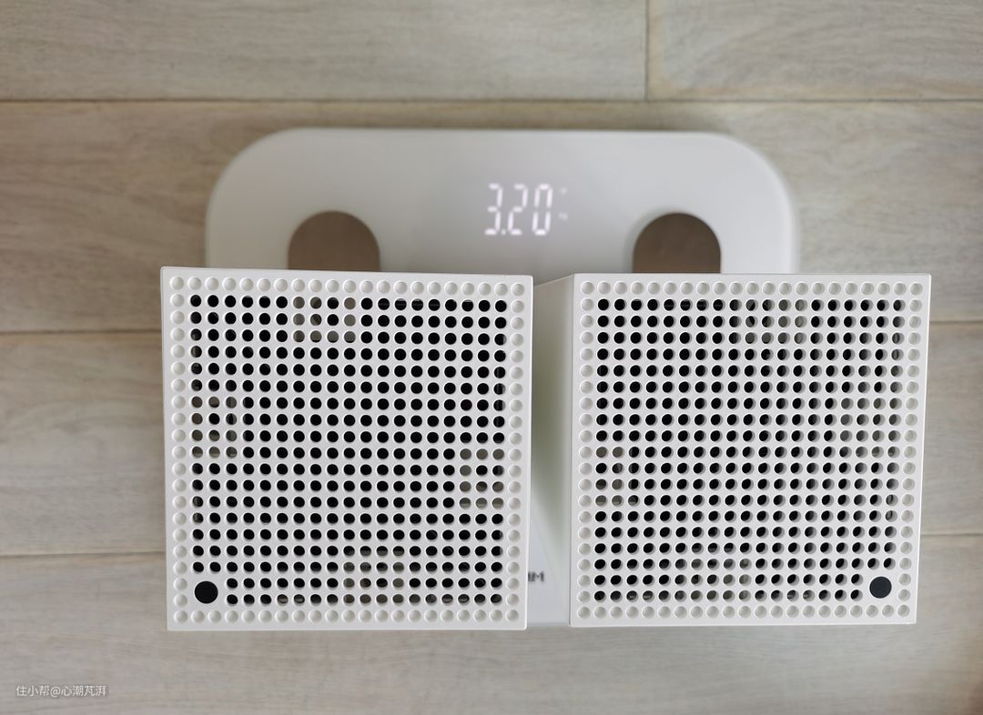 跟其他路由器相比,算是个头比较大的了,不过乍一看是一个高颜值的小音箱。