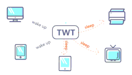 TWT(Target Wake Time——定时唤醒机制),路由器可以统一调度无线终端休眠和数据传输的时间,不仅可以唤醒协调无线终端发送、接收数据的时机,减少多设备无序竞争信道的情况,还可以将无线终端分组到不同的TWT周期,增加睡眠时间,提高设备电池寿命。