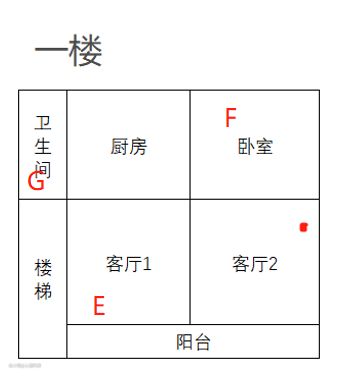 然后,就周末带着沉沉的路由器回了趟老家,老家两层自建房,房子比较老旧了,墙体也很厚,总面积约210平,以下为户型平面图,主节点放在二楼客厅的红点位置,子节点在一楼客厅红点位置。