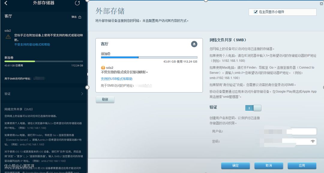以下进行有线和WiFi连接时对于USB3.0扩展接入移动硬盘的测试,测试地点均在二楼客厅,先挂载移动硬盘后进行相关应用的设置开启读写权限后,就可以使用了。
