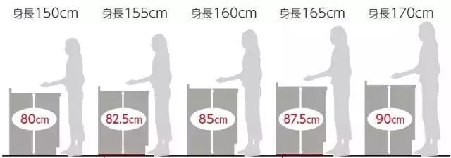【操作台】:烧饭这么累,多数是操作台高度没做好,既要保证洗碗的时候不费力,又要保证切菜不至于弯腰。科学反复试验得出,厨房操作台的高度一般为85~90cm最佳,这个高度正好是身高1.6米的女主人手臂自然抬起的高度。