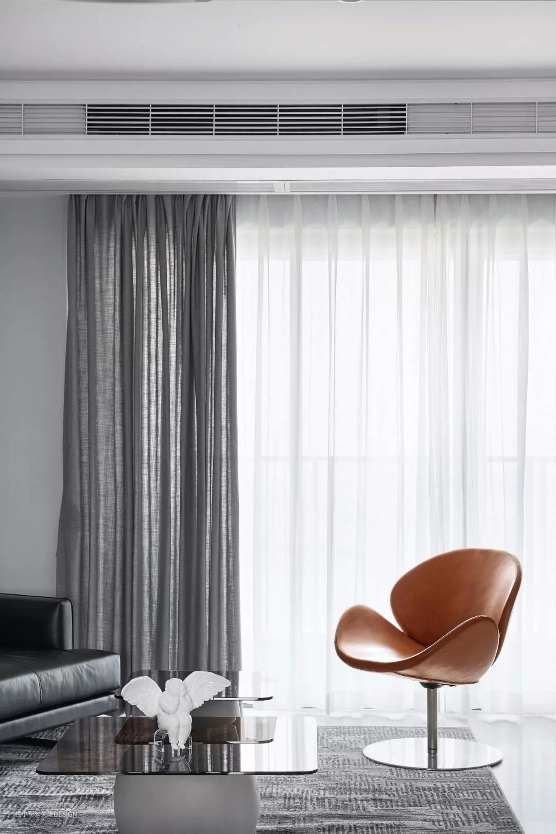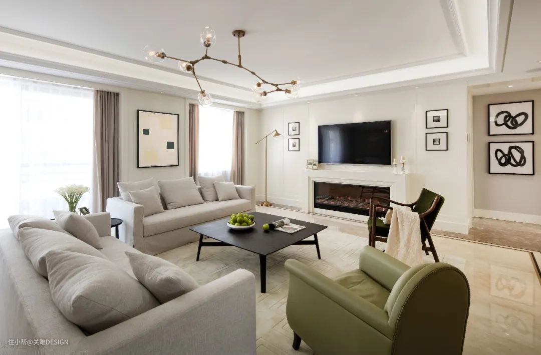 如果像一些别墅或者大宅平层,空间较大的户型,客厅如果不吊顶的话,会显得非常的平淡,而且也显得很空旷。所以如果大平层,不喜欢过于复杂的造型,在选择吊顶的时候,可以采用平吊顶的设计。这样可以结合无主灯的极简设计,让客厅显得更加独特与高雅。