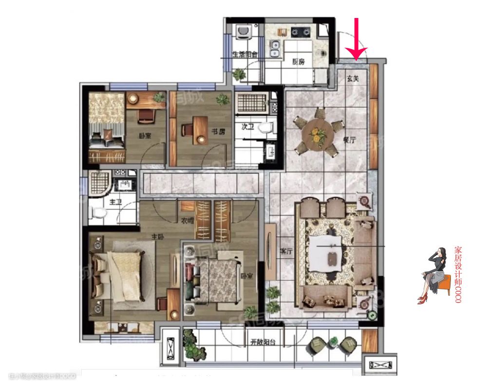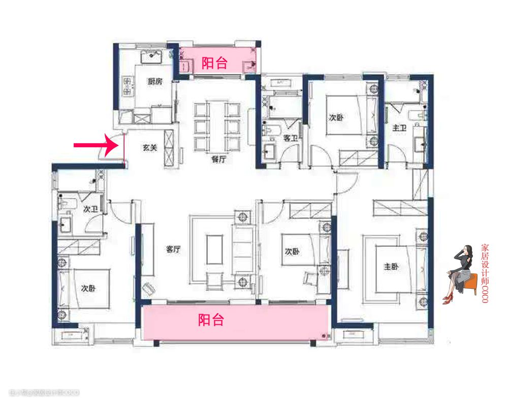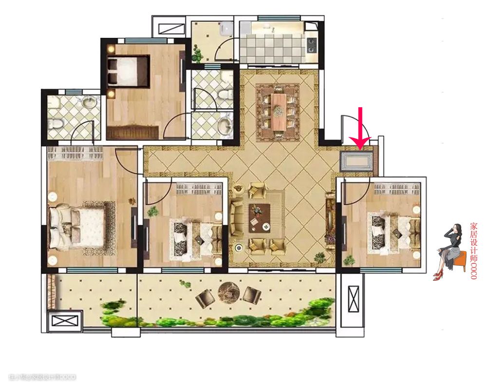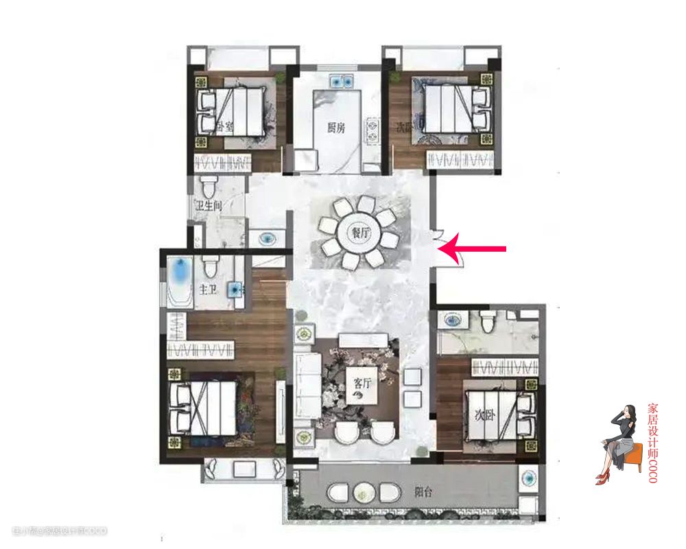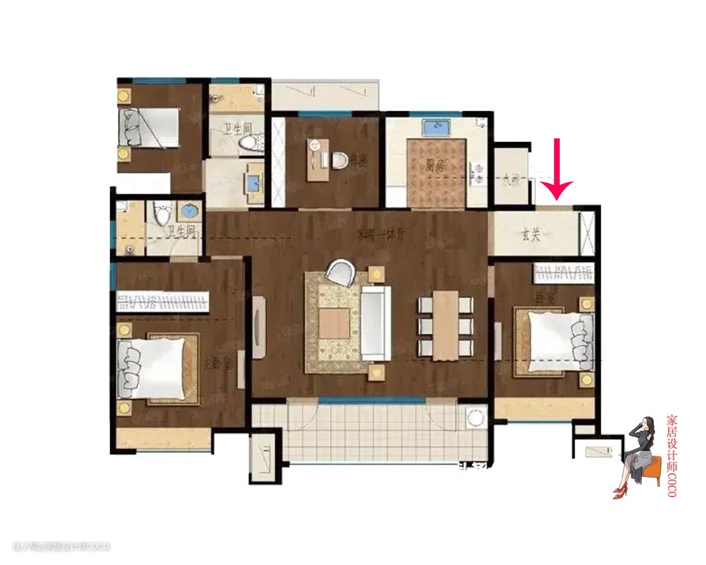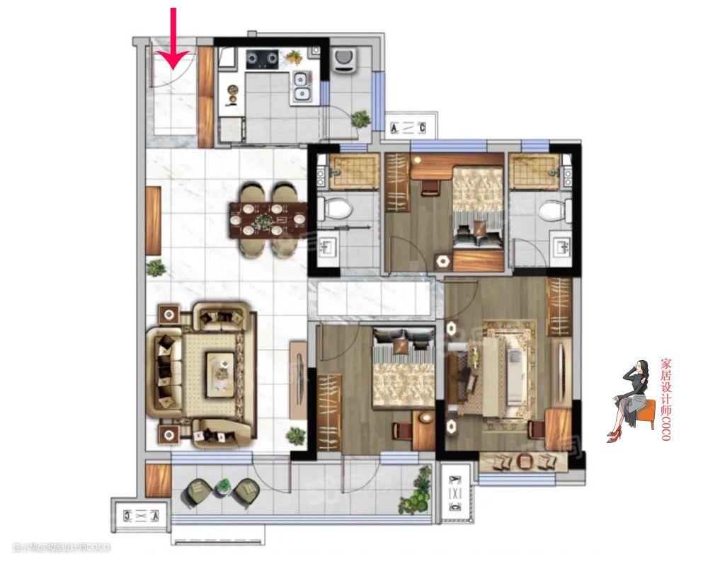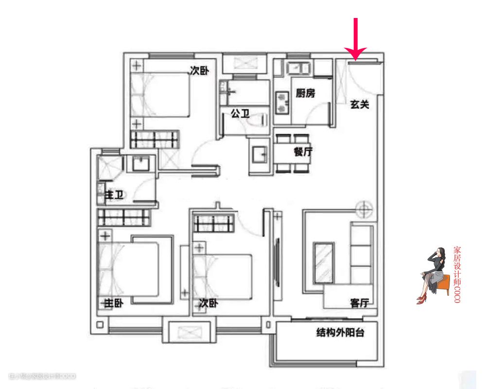 除了厨房的伪通透以外,这款户型其他问题,COCO都觉得不是问题,也都可以很好的处理,总体来讲户型优点大于缺点,较好的户型甚至能达到四开间朝阳。