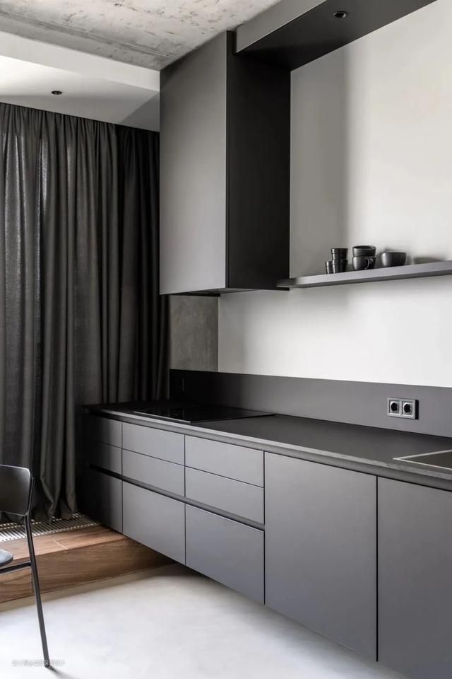 先简单对比一下,拿厨房来说,这是有把手的橱柜↓↓↓