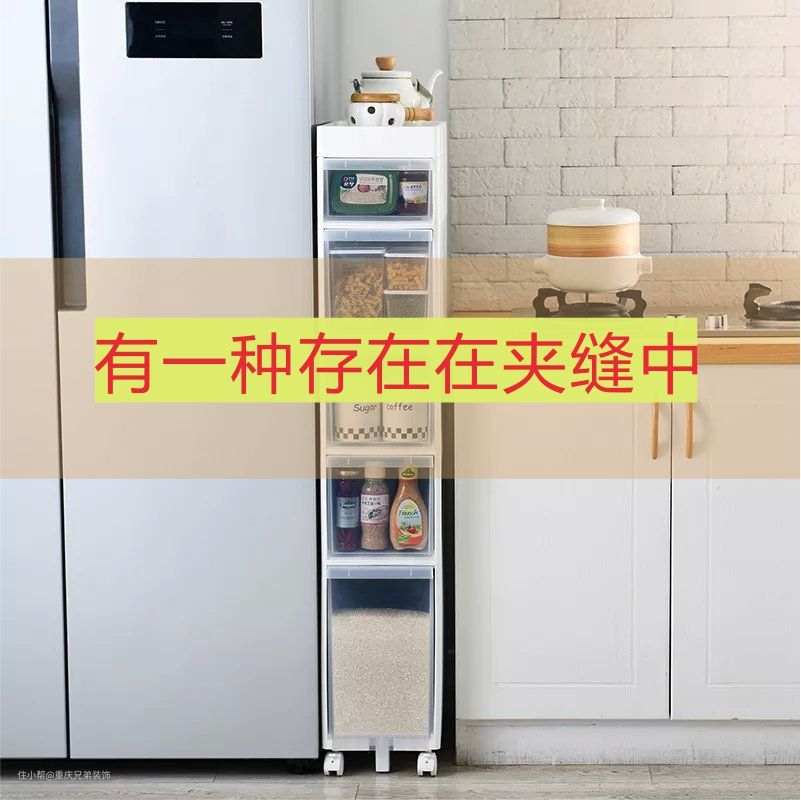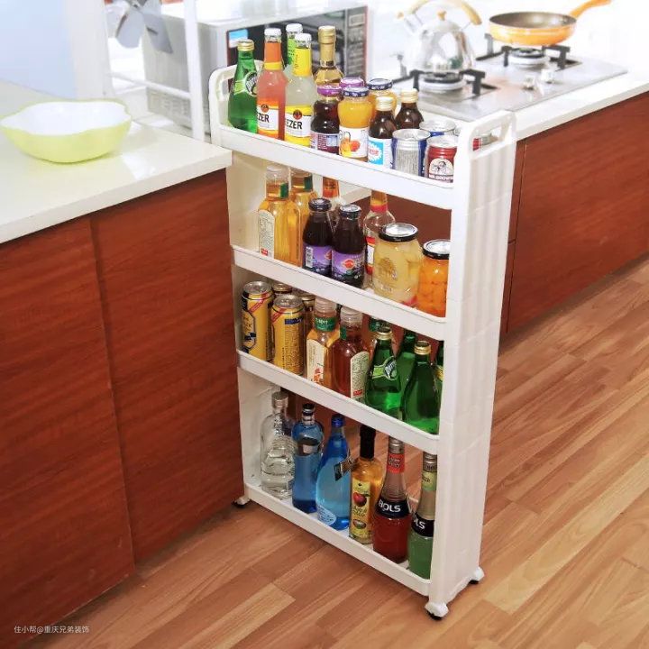 厨房空间小,那就把各种空隙都利用起来,带轮子的置物架,放各种瓶瓶罐罐,也方便拉进拉出。有一种设计叫夹缝设计,小编之前有做过一期小视频,可以去看看哦~~
