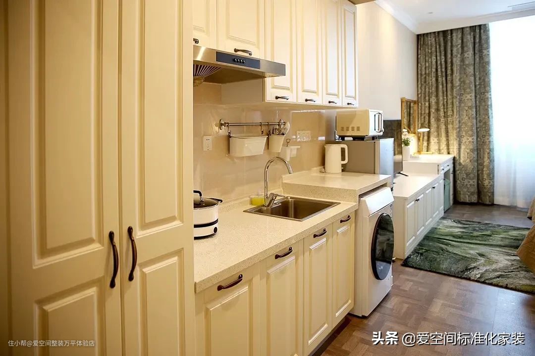 A户型和B户型设有开放式厨房区域,洗衣机;小冰箱;烟机灶具:水槽配置齐全满足各类人群使用。