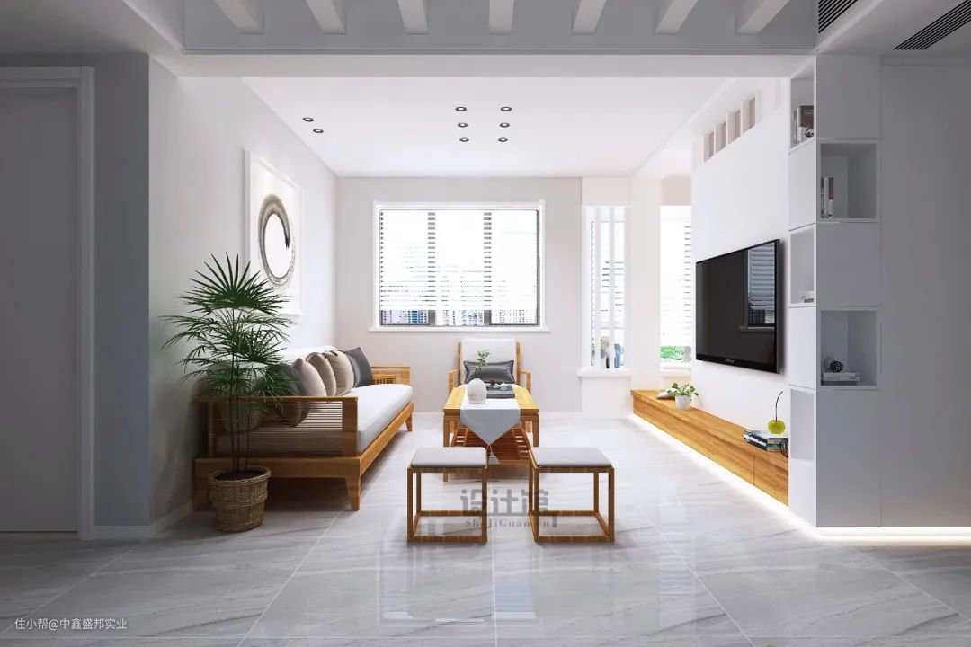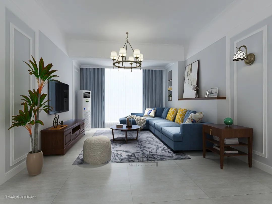 蓝色代表安静,用在客厅里面,可以缓和居住者的浮躁心情,让人置身其中感受到静雅舒适的惬意感。