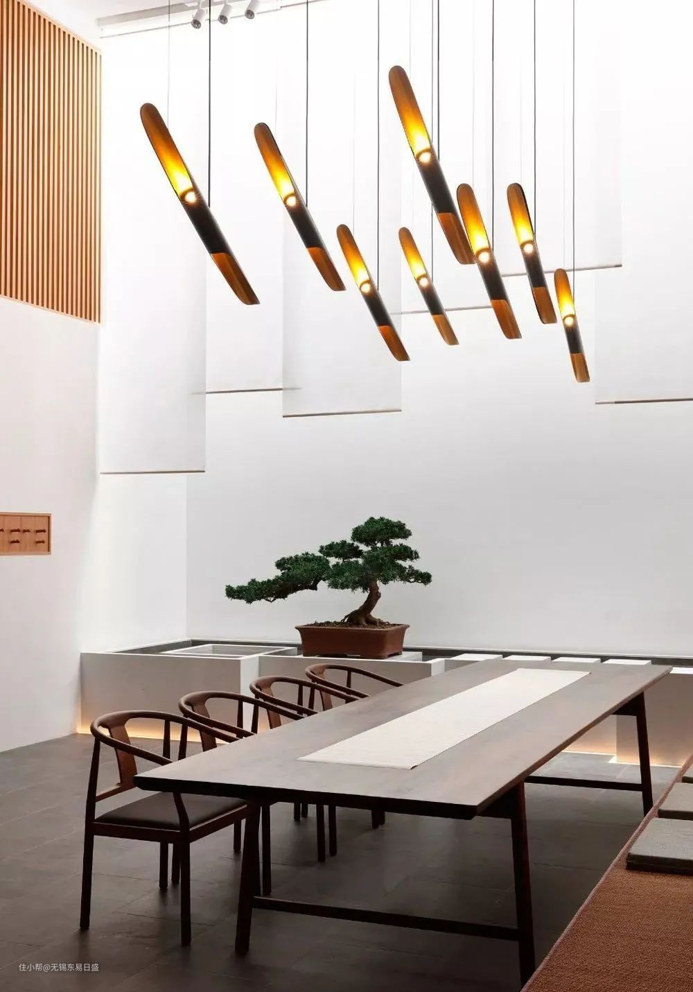 吊灯、壁灯、落地灯、中国的红灯笼、西式的汽灯、东南亚的藤编灯都有各自的味,灯具的选用要结合茶室家具和装饰物的整体风格,不能显得突兀和怪异。