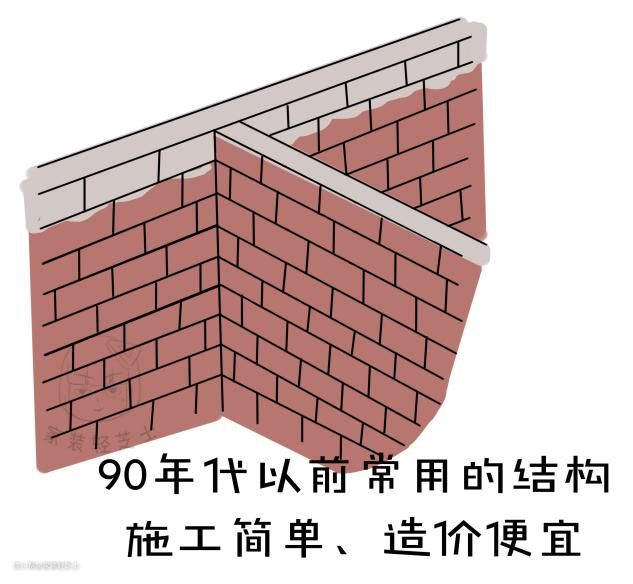 砌体结构是在90年代常见的房屋结构,因为使用红砖堆砌而成,所以也叫"砖混"结构。