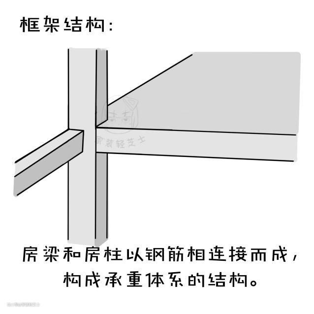 框架结构是用梁和柱相连接而成,用房梁和房柱承重墙不起承重作用。可以理解为纯柱子结构,常用于别墅或者独栋的房屋。