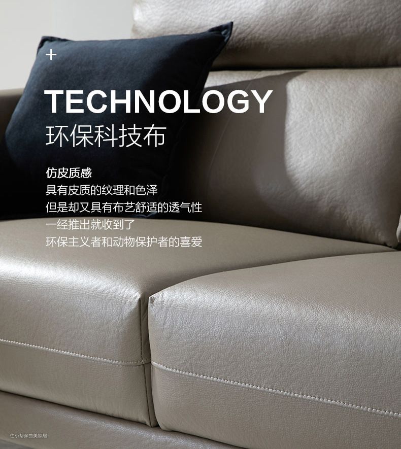 随着技术的进步,科技布也在不断升级,比如我们在刚面世的曲美定制新品系列里,就用到了第八代超纤科技布,它拥有非常多的优点: