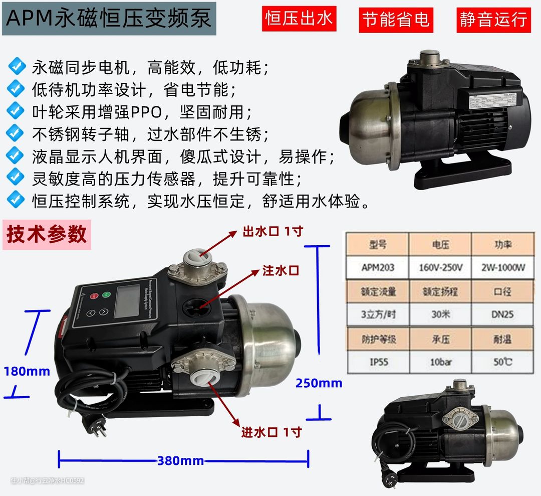 也就是说增压泵扬程选择30米,流量选择3吨的基本上都可以满足大部分家庭使用,但安装增压泵后的增压效果并不一定一样,主要是增压水泵的进出水口都是1寸的,而家庭里面4分入户管径的比比皆是,即使增压泵有这个能力,但入户水管太细,没这么水能抽过来,出水端也不能抽这么多水过来,所以说即使是变频增压水泵,也没办法真正改变水流量忽大忽小的实际情况,特别是同时开花洒和水龙头,或同时打开智能马桶和花洒。