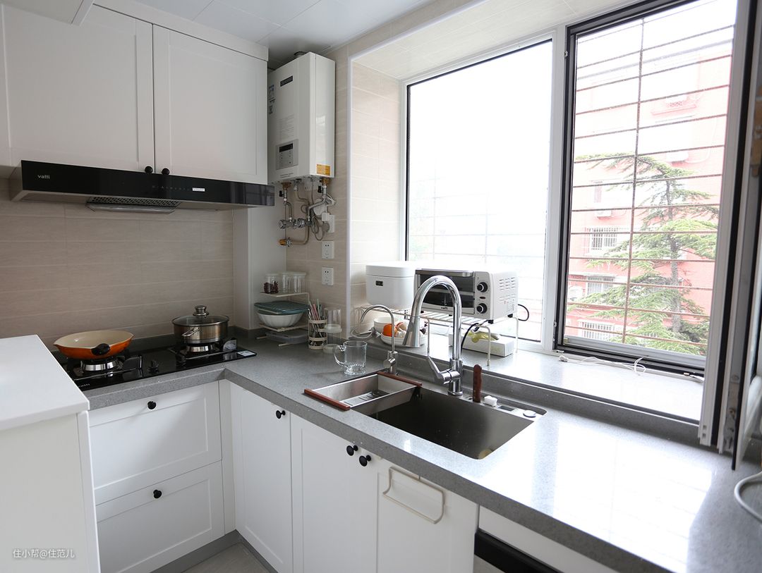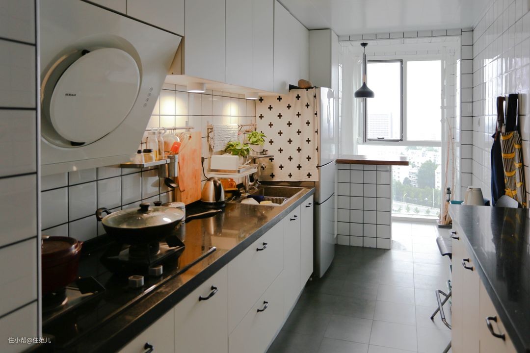 如果你家墙体能改动,我是非常推荐把厨房拓宽一些的,从邻近的空间“偷”一点面积。