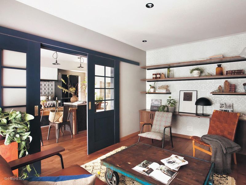 因此,封闭式厨房通铺木地板,推荐配合用吊轨推拉门。