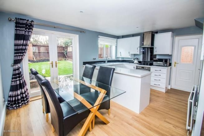 从客厅餐厅到厨房,如果整个地面是一体连贯的,厨房会显得更大。