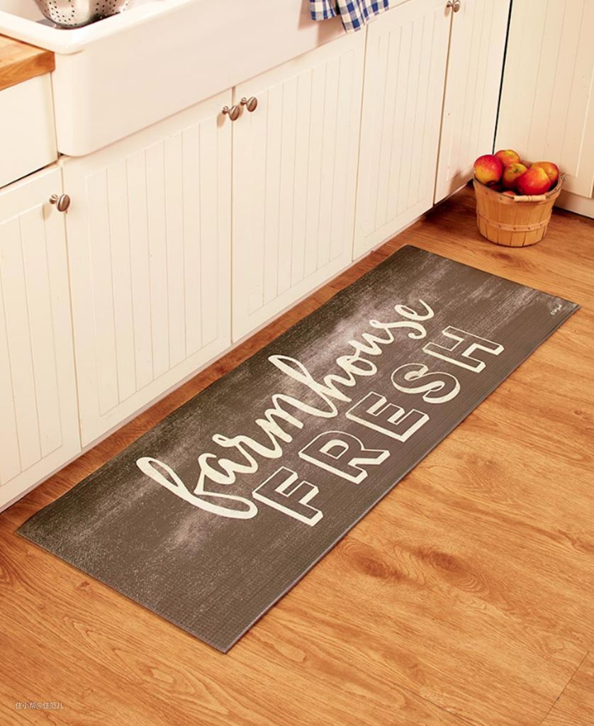 为了地板保养,厨房用多层实木地板的话,可以在水槽前面铺一块地垫。