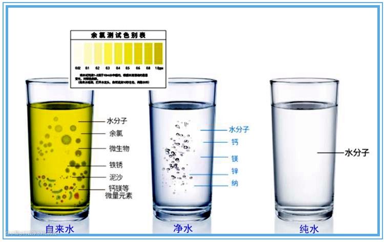 ⑴.看颜色和浑浊度、闻味道、这几个是判断水质最简单的方法,洁净的水是无色无味的。用玻璃杯接满一杯水,对着光线看有无悬浮在水中的细微物质,再静置三小时观察杯底是否有沉淀物,如果有,说明水中悬浮杂质严重超标;接一杯水,然后用鼻子闻一闻,如果水出现明显的颜色、气味等异常情况,则说明水质可能受到污染,如果能闻到漂白粉(氯气)的味道,说明自来水中余氯超标(早上接水刷牙时消毒水的味道也是余氯超标)。水受不同物质污染,就会产生不同的味道,比如含有机物的水发甜,含高价铁的水发涩,含硫酸镁或硫酸钠的水发苦,含氯化钠的水发咸,含硫化氢的水有臭鸡蛋味。这些颜色、味道异常的水都不宜饮用。