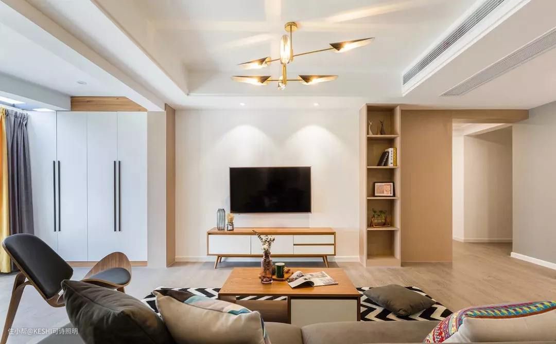 以客厅为例,通常会在客厅正中央留吸顶灯或吊灯电位,而不一定在空间的四周设计射灯、筒灯电位。这就意味着入住之前想要装无主灯,必须先做灯光布局,重新做电位、布电线。