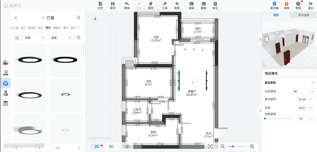 如果你对灯光有一定的研究,或者对布局有自己的明确想法,可以自己规划灯光布局。包括使用哪些灯、多少灯。可以用手绘、PPT、酷家乐等工具,设计一份灯光布局草稿图。