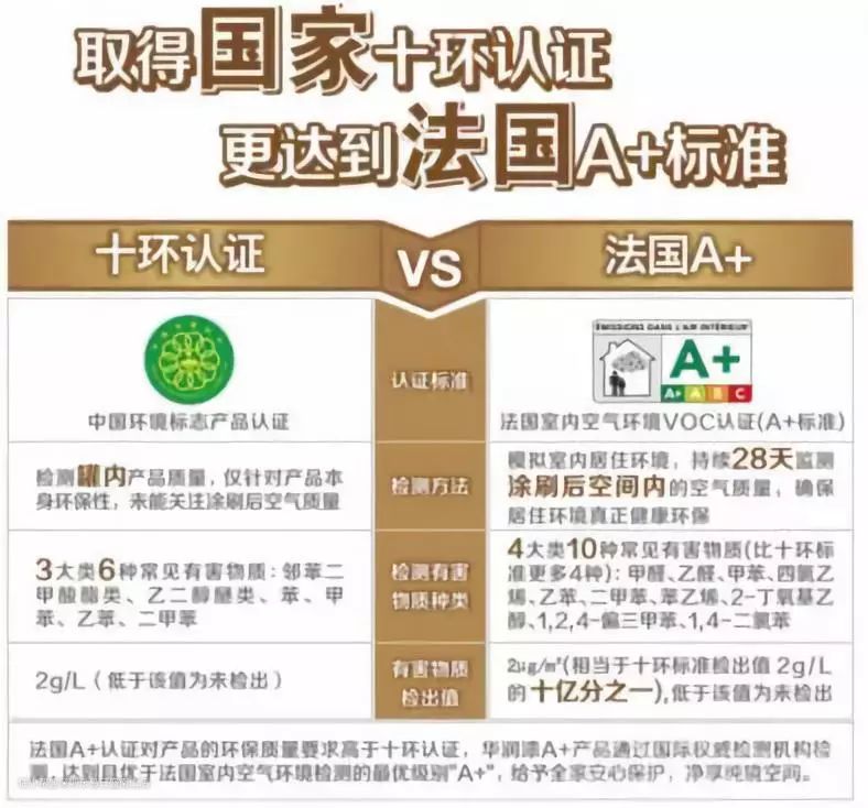 欧盟环保标准规定乳胶漆的VOC含量不高于75g/L,而中国合格的标准是200,基本是欧盟的3倍。欧盟一些环保标注认证的要求是不高于30,中国十环环保认证的标准是80,已经高于人家的合格产品的要求了。(VOC是挥发性有机物总称、包括甲醛、苯、甲苯、乙苯、二甲苯等有害物质)
