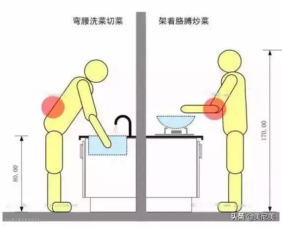 我们先来还原一下做饭的场景:因为水槽是一个凹槽,锅和灶台向上占据空间,这将导致烹饪和洗碗时都要弯腰,烹饪时弯曲手臂,饭后不感到太累没啥心情吃了。如果我们调高水槽的位置,降低灶台的面积,不管我们是洗还是炒,我们的身体都处于放松的状态,这对喜欢烹饪的人来说是一种享受。