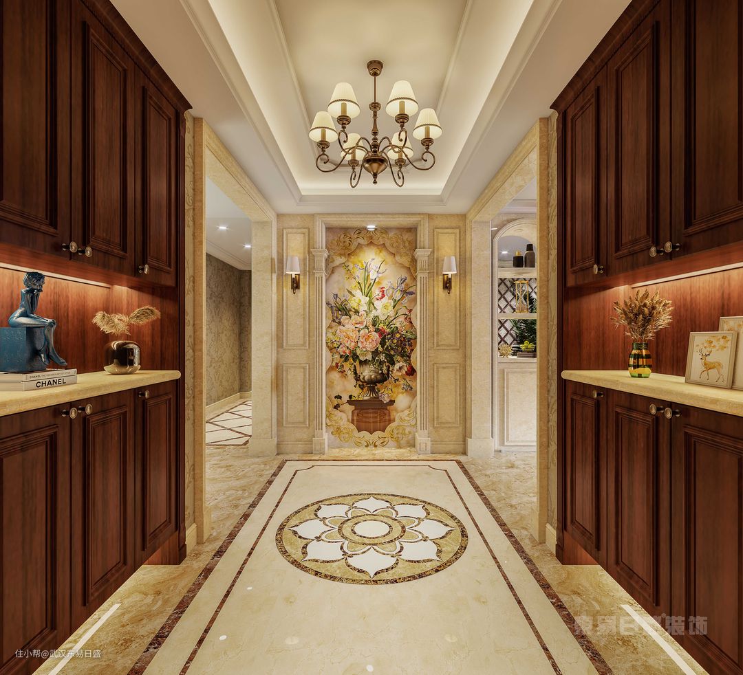 门厅以花饰图案、立柱造型为入户端景,经典高级的空间氛围给人富丽浪漫的古典视觉感。