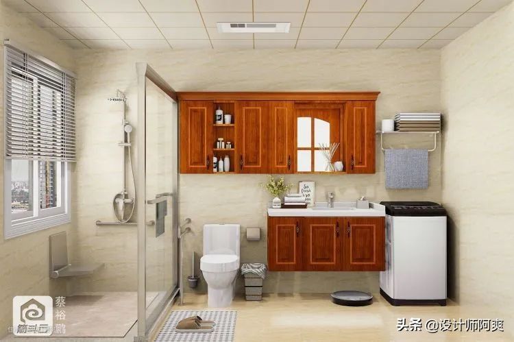 如果做了干湿分离,面积大的话可以放在淋浴区内不靠近淋浴的那边,面积小的话放在干区靠近淋浴区的地方,打开门等室温升上来再洗。