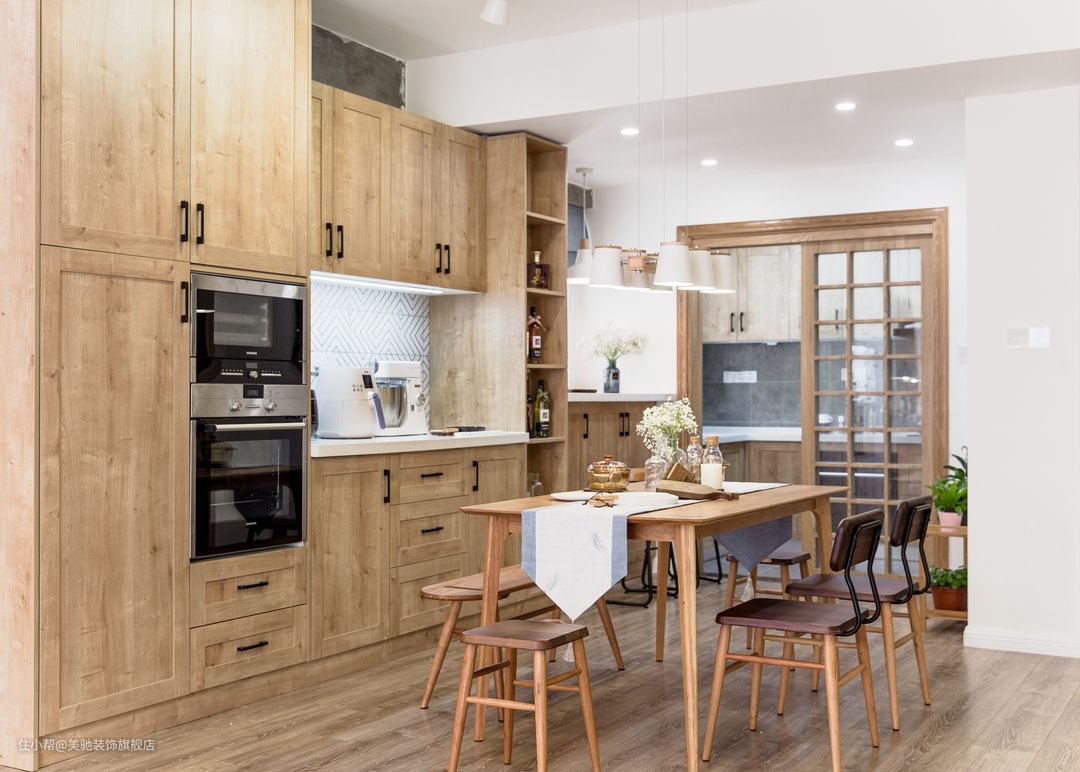 以往厨房、餐厅各自独立,家庭户型小就只能将客厅做餐厅。而现在,将餐厨结合设计,逐渐变成一种时尚,一方面节约了家庭空间,另一方面则能将空间规划更为统一。