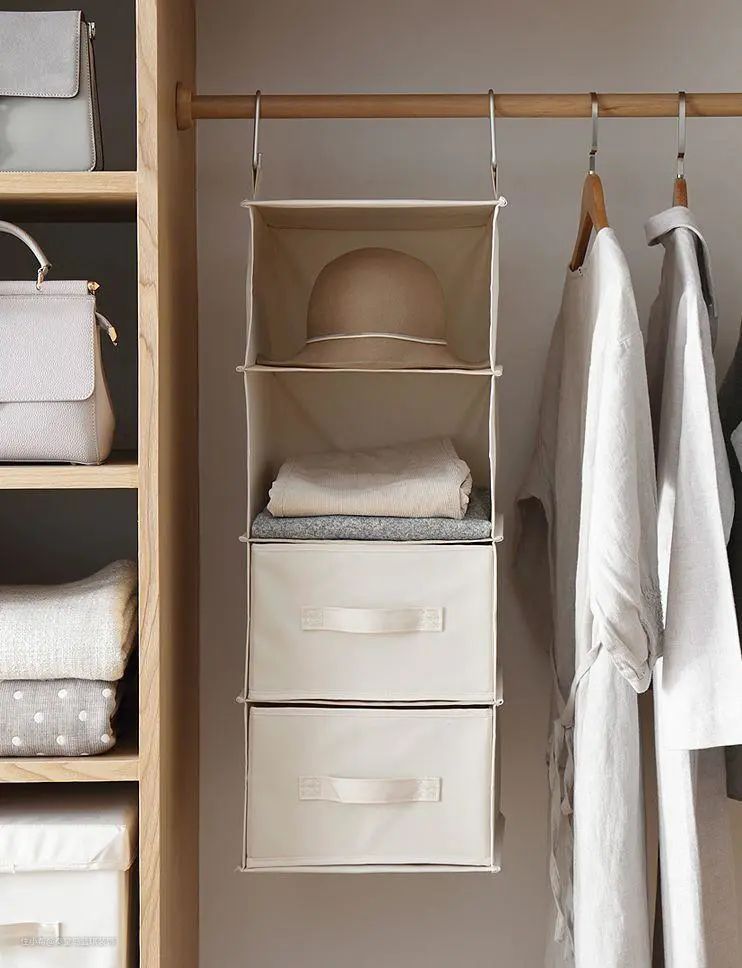 这类挂袋最适合收纳包包、帽子一类衣物,带抽屉的还可以存放一些首饰。