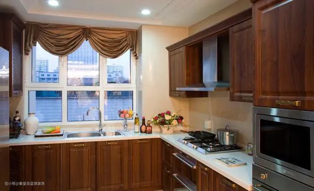 缺点:不足之处就是转角地方增加,造成比较难处理。厨电配置要找准相关位置,其次占用空间也会相对多点。 建议:U型橱柜对小厨房不适合这种设计,会显得拥挤。适合家庭成员多的户主,因为可以多人进行做家务也不会有影响。