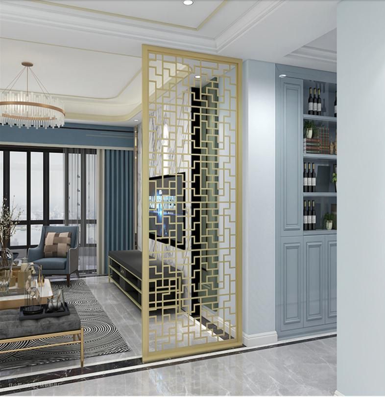 屏风是客厅中最常用的隔断。放在客厅时,可以起到很好的屏蔽作用。避免进入门看到整个房子。具有展示和空间划分的优势。