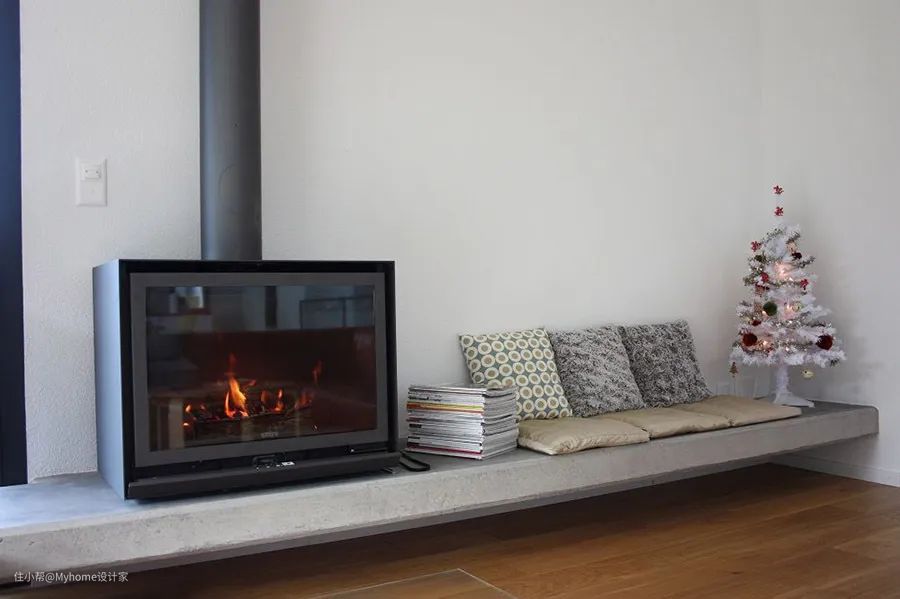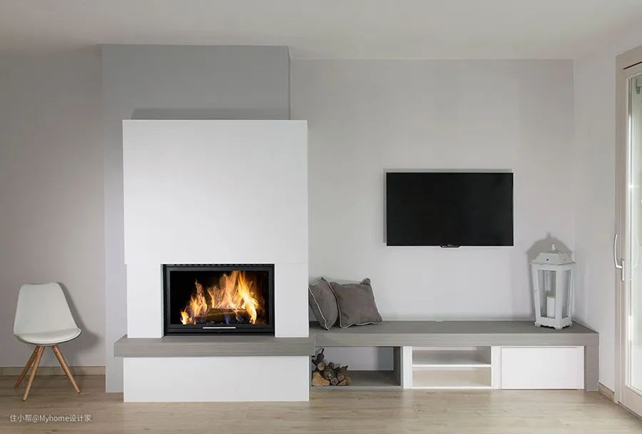 并电视柜、壁炉…结合,形成一体式设计,还能省下购买电视柜的经费。