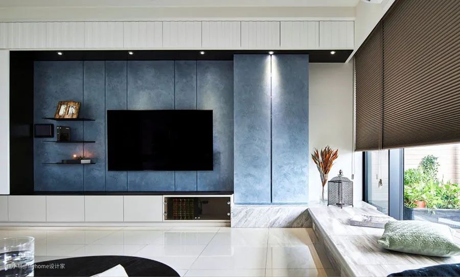 地台除了打造在客厅两侧,也能规划在电视背景墙,