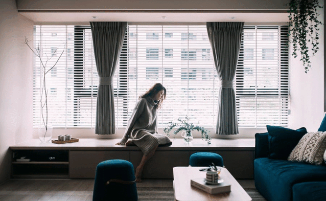 飘窗除了当做座位使用,也能变成一处休憩、睡卧区。