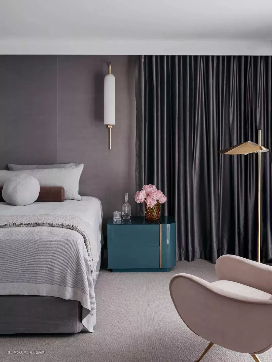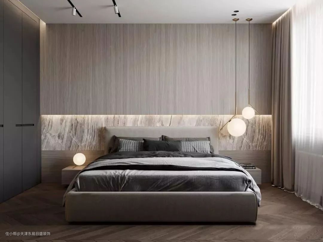 中性空间与天然材料间寻找平衡点。用中性灰为主色调,极简即极奢,用其他色调来区分空间的层次,高级又简单的配色方案。