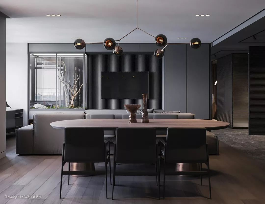 沉稳睿智的黑色、知性优雅的高级灰,湿润的木质,让每一处空间都可以优雅、惬意而质感。