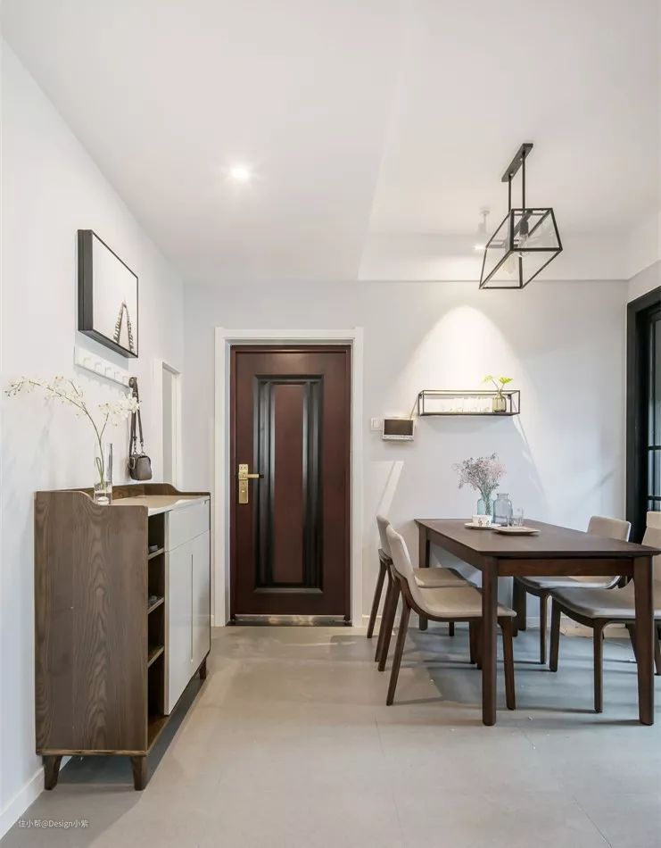 担心大柜子阻碍空间动线,可以考虑在门的一侧摆放小体量的鞋柜。