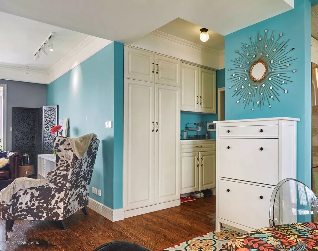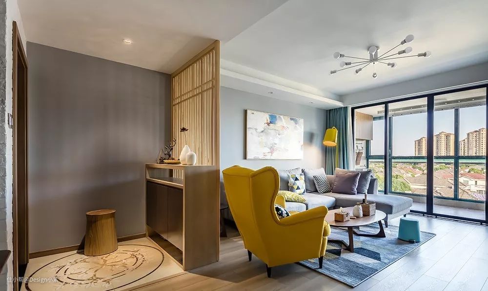 这种情况可以直接在进门右手边找一个合适的位置做玄关隔断,并在玄关隔断的下面做一个鞋柜,既解决开门见客厅的尴尬,又能收纳鞋子。