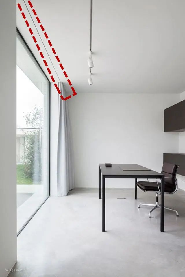 其实窗帘轨道的装法有很多,除了上面2种之外,如今还流行这种装法:窗帘轨道直接嵌入天花板▼