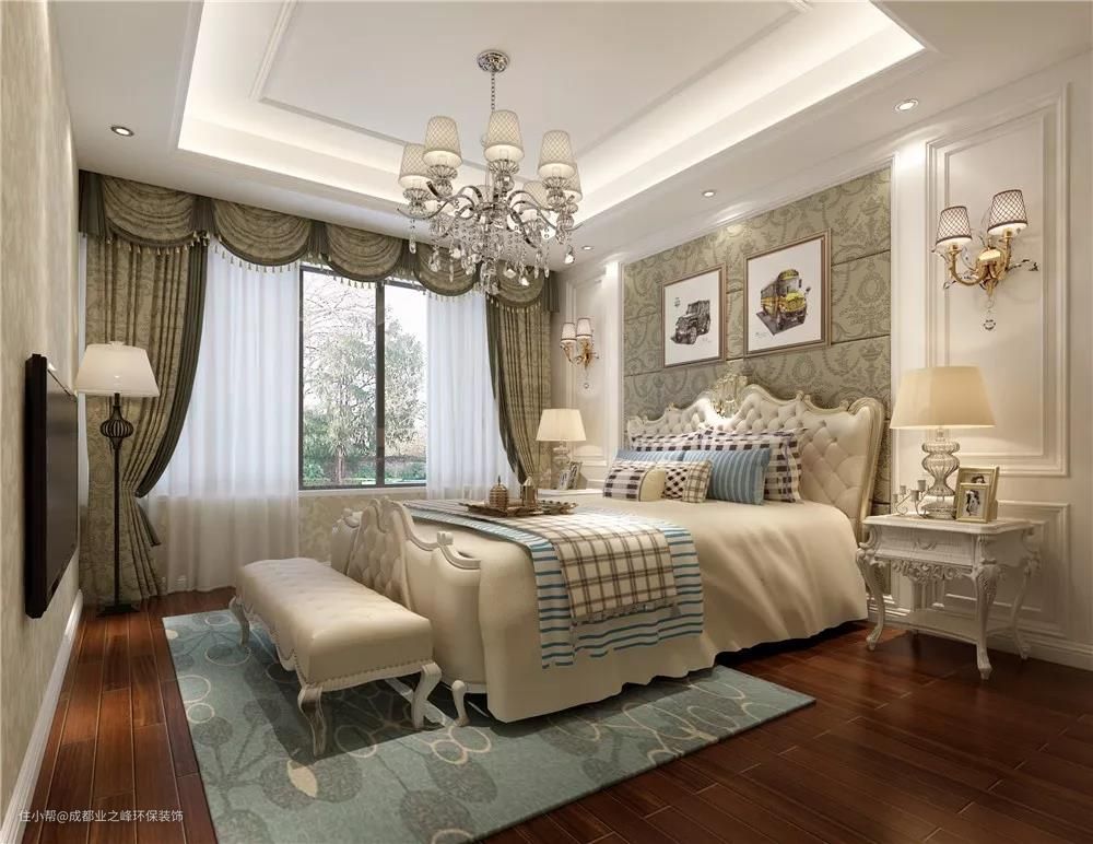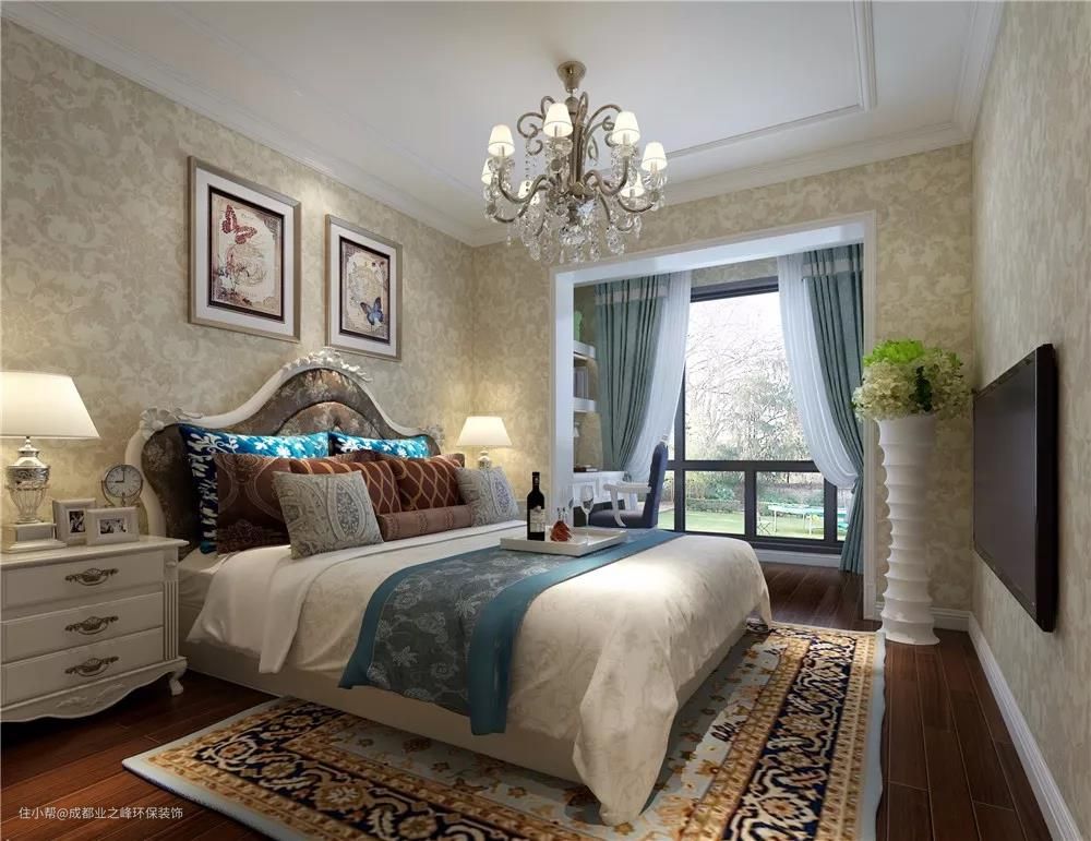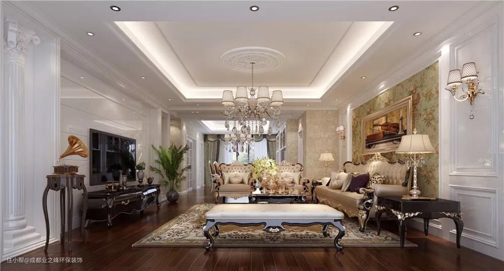 本案是欧式风格,欧式风格有它的特点是所有主材的配置质感非常强。简单的欧式线条与家具互相衬托。