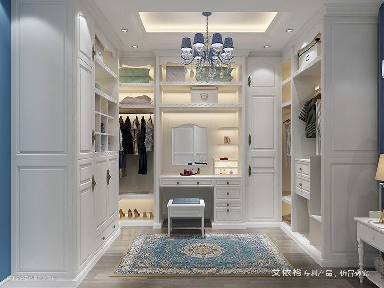 带梳妆台的开放式衣帽间,空间开阔、设计感强、布局舒适、实用性高、时尚美观!衣帽间不再是大房子的专属,而是成为年轻人对追求生活品质的一种表现。