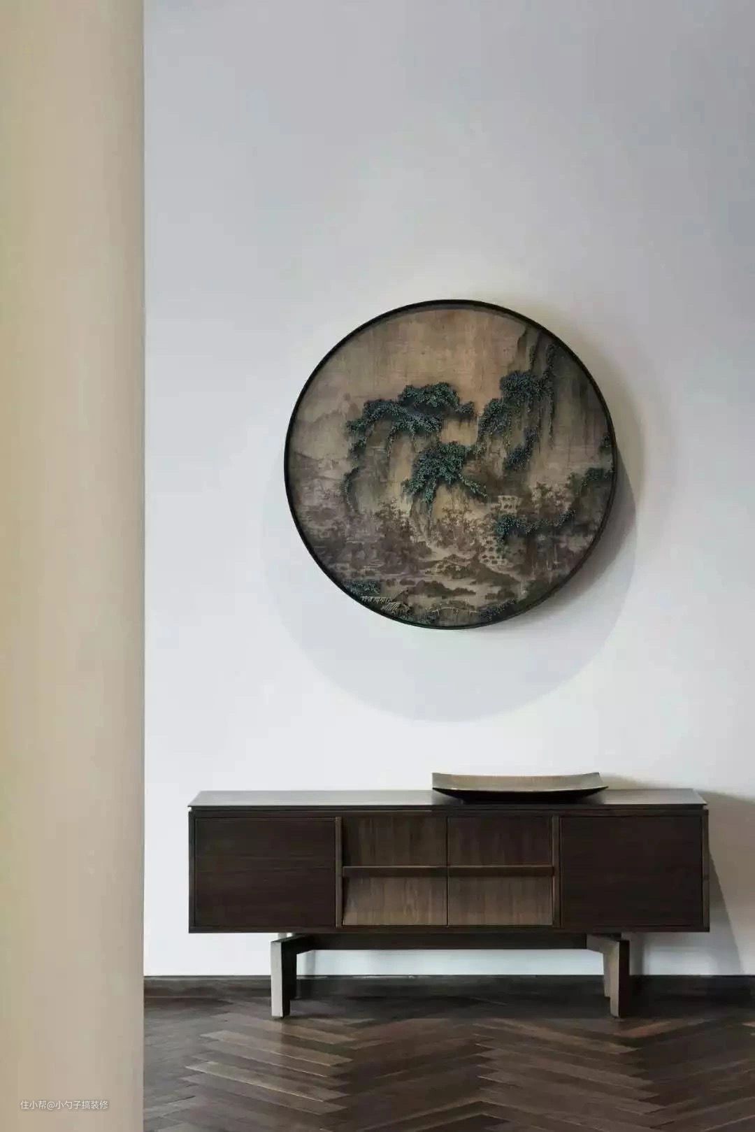 中国古代风水专著《青囊序》曰:“一生二兮二生三,三生万物是玄关。”玄关墙搭配圆的造型,象征了圆圆满满,能够给家庭带来清正之气。