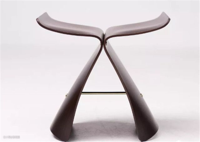 蝴蝶凳由日本设计大师柳宗理设计,整体造型很像是一只正在扇动翅膀的蝴蝶。“蝴蝶凳”的组件只由两块成形胶合板构成,两块胶合板通过一个轴心对称地连接在一起。蝴蝶凳独具匠心的构造,是抽象形态仿生中的经典之作。