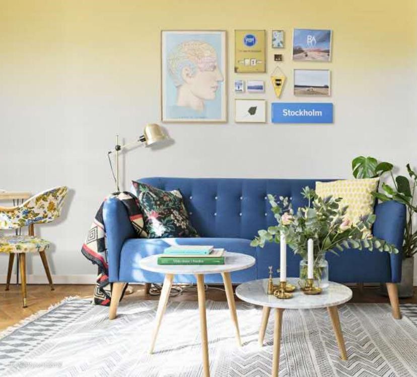 芒果MW-Y003上+MW-O004下,这款艺术漆充满渐变层次,充聚丰富的视觉体验,搭配蓝色丝绒沙发、白色+木色茶几,而金色或黄色软装饰品,呼应墙面立邦艺术漆的杏色,使得整个客厅充满北欧风情舒适感。