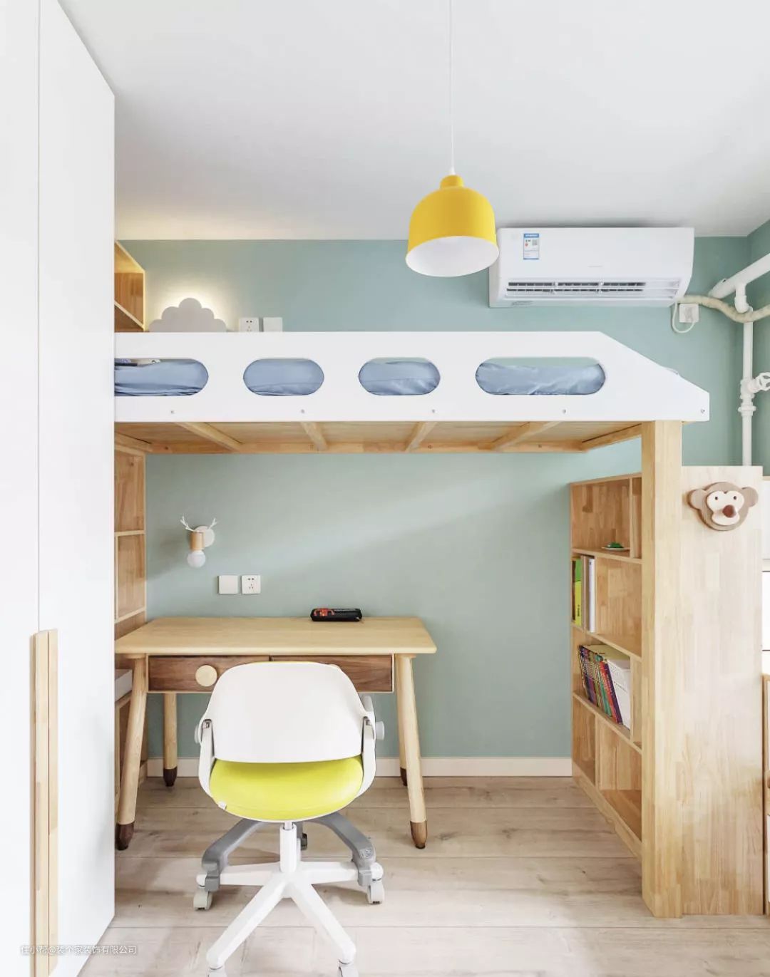 还有一种巧妙设计是在卧室放置上床下桌的双层结构床,这种类似学生宿舍的设计方案特别适合小户型家居。