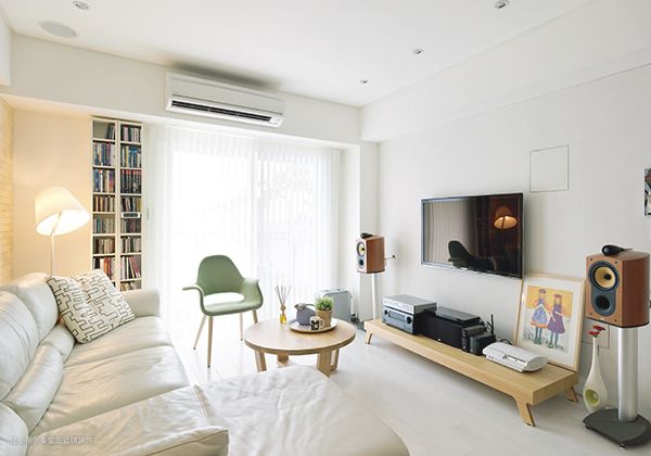 谁说电视柜一定是在电视机下面用来放置电视的。随着液晶电视等的普及,电视柜早不是用以放置电视机,而是作为一种收纳甚至装饰品出现。上图中,粉色的电视背景墙与白色的内嵌式收纳格相结合,黑色的液晶电视与音响设备被放置安装在同样内嵌处理的相应区域。这里并没有在电视机下面方位看到电视柜的身影,反而是电视机左右两边多了收纳空间。该收纳空间分别充当了电视柜收纳的功能,同时简化了室内背景墙设计效果,颇为符合宜家风格中简约的装修特点。