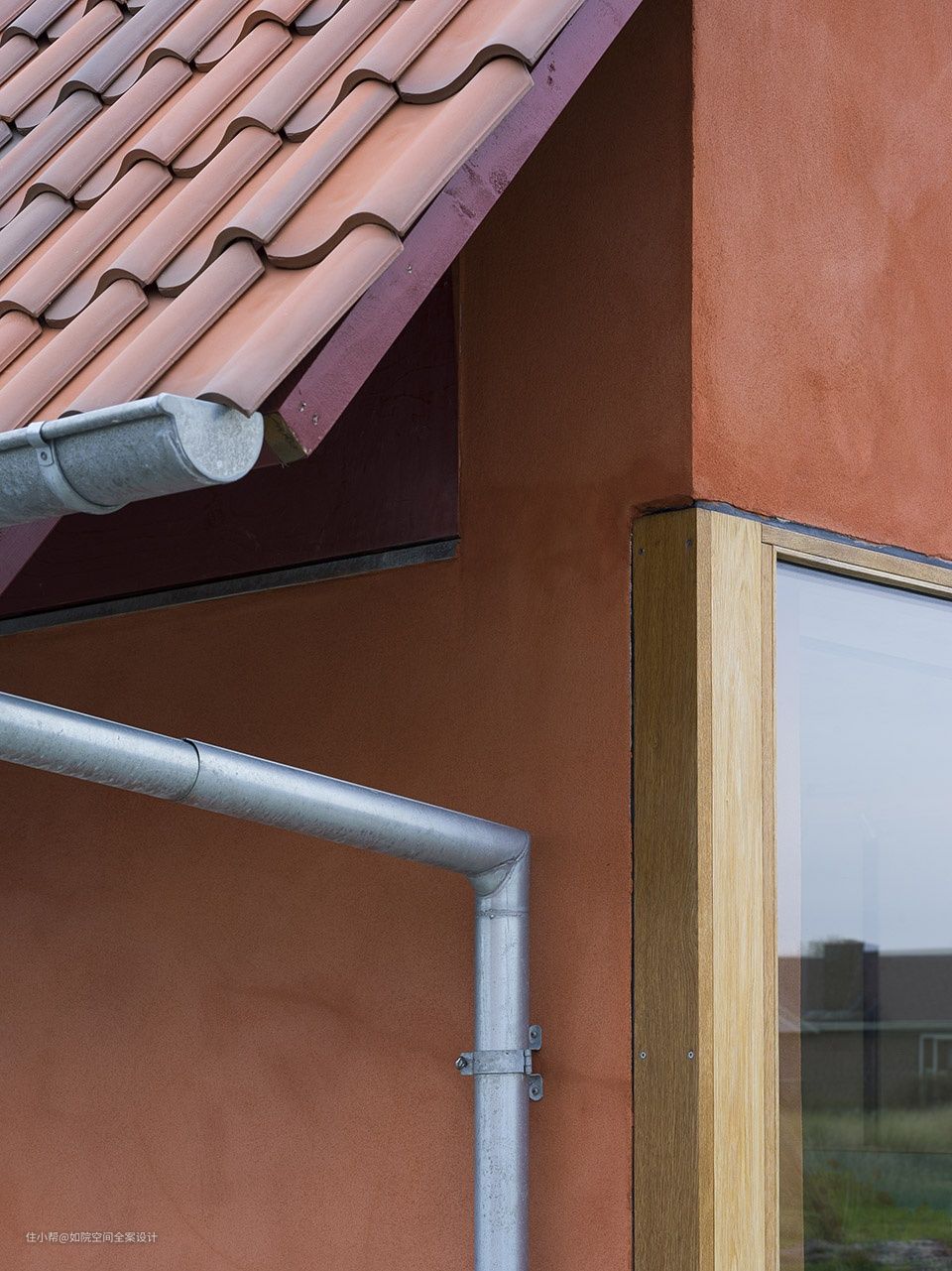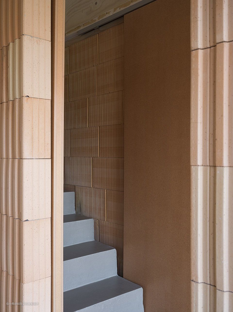 结构元素,饰带和栏杆它将屋顶从砖石结构上抬高。梁线以下的隔热粘土块分隔了空间。砌块采用浅陶色,接缝狭窄