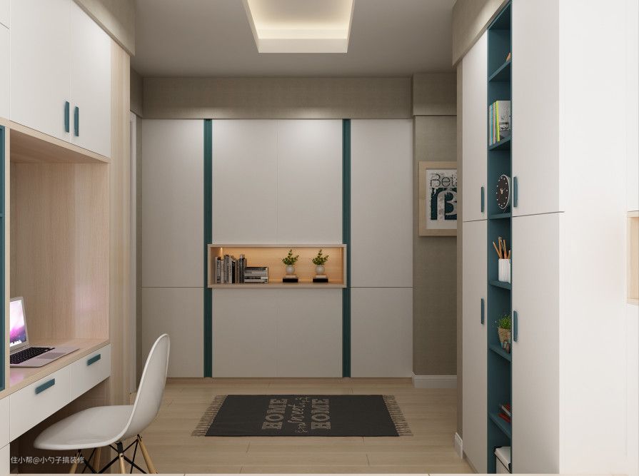 2.儿童的衣物,通常是挂件较少,叠放的衣物较多,且考虑到儿童玩具的摆放问题,最好能在衣柜、衣帽间设计时就考虑一个大的通体柜,只有上层的挂件,下层空置,可方便儿童随时打开柜门取放和收藏玩具,满足儿童好玩的心态。