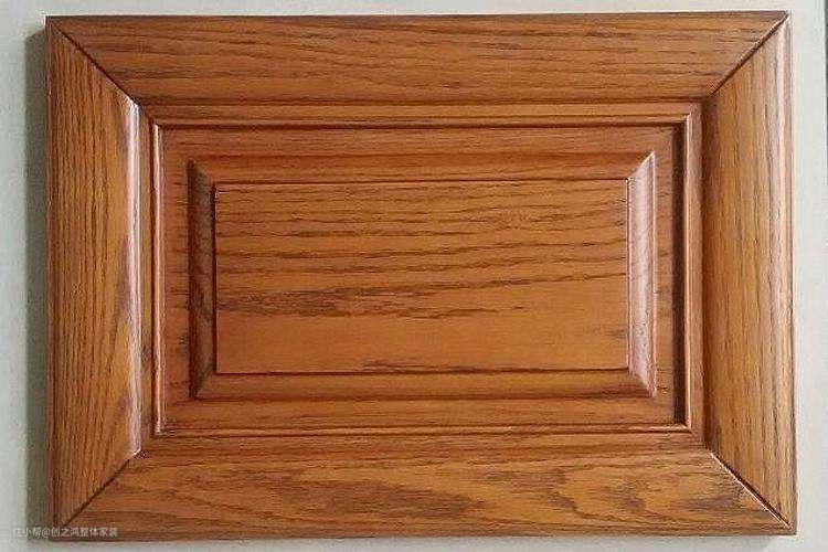 包复框型门板门框基材为中密度板,外包PVC,门芯板为德国爱家装饰板或防火板等双饰板,由厨柜公司自行再加工拼接。