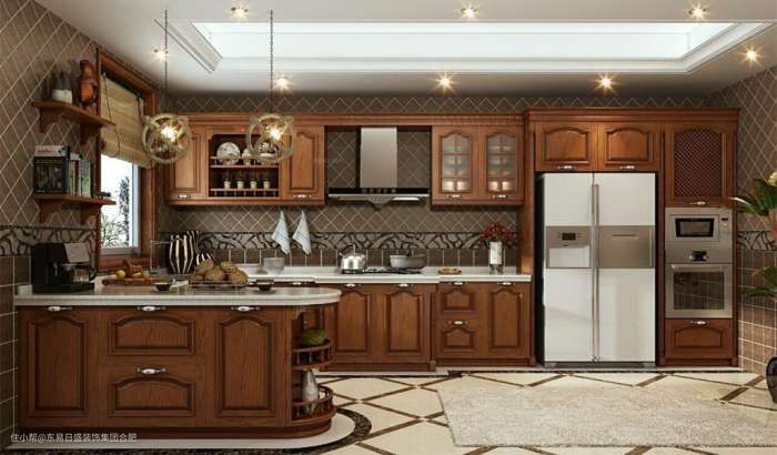 这是在国外很常见的橱柜模式,以它为基础打造出的厨房对于活动区域的要求很高而且要求有很大的面积。